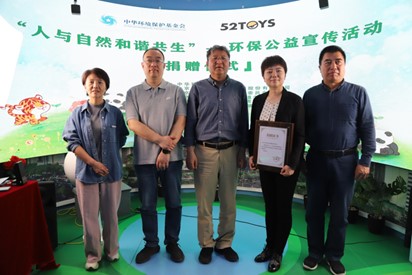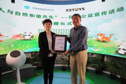 中華環境保護基金會房志副秘書長為北京樂自天成文化發展股份有限公司頒發了捐贈證書,柏潔副總裁表示,愛護環境熱心公益是中華民族的傳統美德,更是社會主義核心價值觀的體現,52TOYS將加大參與社會公益履行企業社會責任的力度,從環境保護、青少年教育等多個方向踐行可持續發展理念,用更多實際行動回饋國家與社會,充分實現企業的社會價值。
