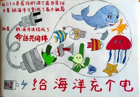 楊文博小朋友的作品展現(xiàn)了兩個同齡小朋友在海洋暢游情景,來一場與大海親密接觸。他通過圖文方式展現(xiàn)人與自然和諧共生的美好愿景,也傳遞了保護(hù)環(huán)境的科普知識。保護(hù)海洋就是保護(hù)我們自己。