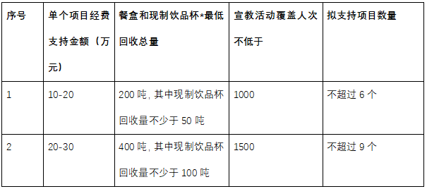 2. 本次經費支持采取梯度支持機制,對于回收量較高,能覆蓋所在城市更多區域、更多宣傳人次,或開展形式更豐富的宣傳活動的單位,可申請更高額度的經費支持。具體標準可參照下表: