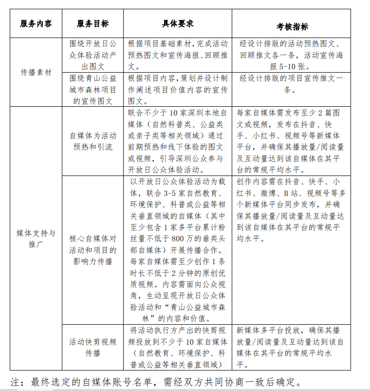 1.活動策劃:策劃設計一場為期2.5天的、面向商家、媒體和社會公眾的公益項目開放日公眾體驗活動。活動地點深圳市深圳灣公園潮汐濕地(面向公眾免費開放場域)。活動需圍繞“青山公益城市森林”潮汐濕地項目,以生物多樣性保護與零廢棄為主題,兼具科普性、互動性和創意性;