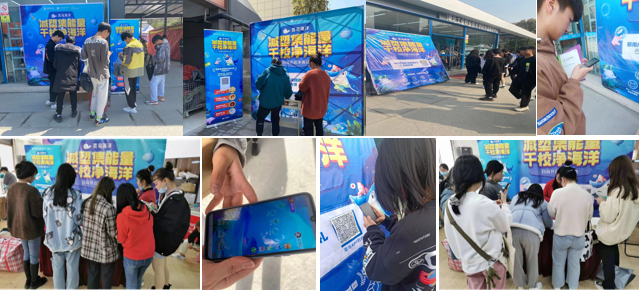 中華環境保護基金會聯合全國高校開展線下快閃活動,學生通過菜鳥裹裹APP掃碼進入“菜鳥海洋”,參與為海洋減塑線上公益活動,將大眾目光聚集海洋垃圾,讓“減塑”成為一種趨勢。