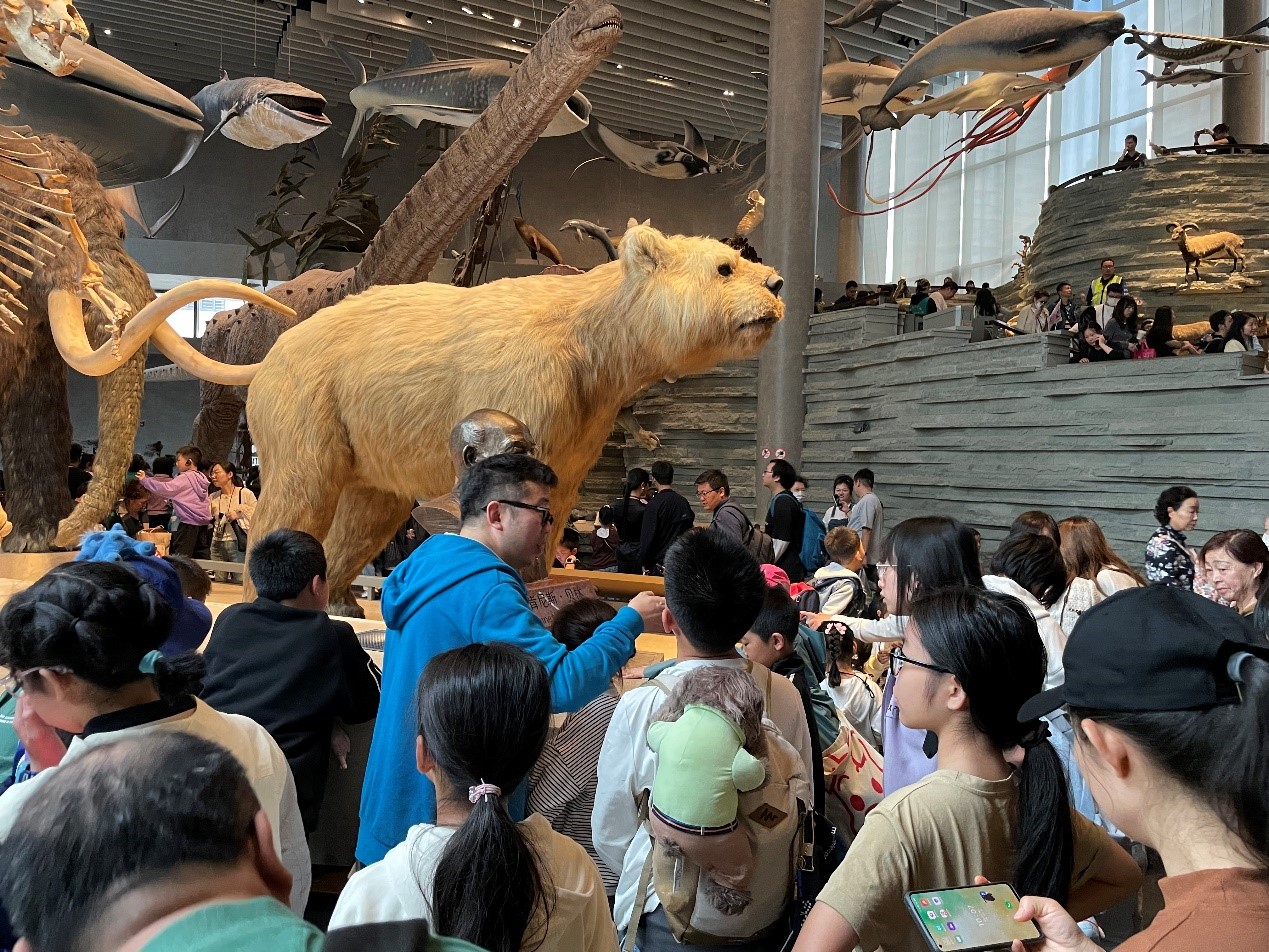 4月19日,學生們來到了上海迪士尼度假區的迪士尼小鎮和星愿公園。從天空的飛鳥到湖中游戲的小魚,從生機勃勃的水下森林到水與岸間的生態駁岸,從繽紛多彩的園林花卉到獨具匠心的環保設計,星愿公園展示了城市自然生態特征和野趣魅力,進一步傳遞了尊重自然、順應自然、保護自然的理念。在迪士尼小鎮舉辦的“贊頌地球—環保市集”上,中華環境保護基金會的互動展位還展出了由學生們親手制作的小動物手工藝品,眾多游客被吸引駐足。上海迪士尼度假區還為學生代表們贈送了迪士尼毛絨玩具,鼓勵大家熱愛并積極探索大自然的奧秘。在上海自然博物館,學生們通過展區參觀,學習了城市生態與生物多樣性,增進了對生物及其演化的了解,發現自然之美、領悟自然真諦。