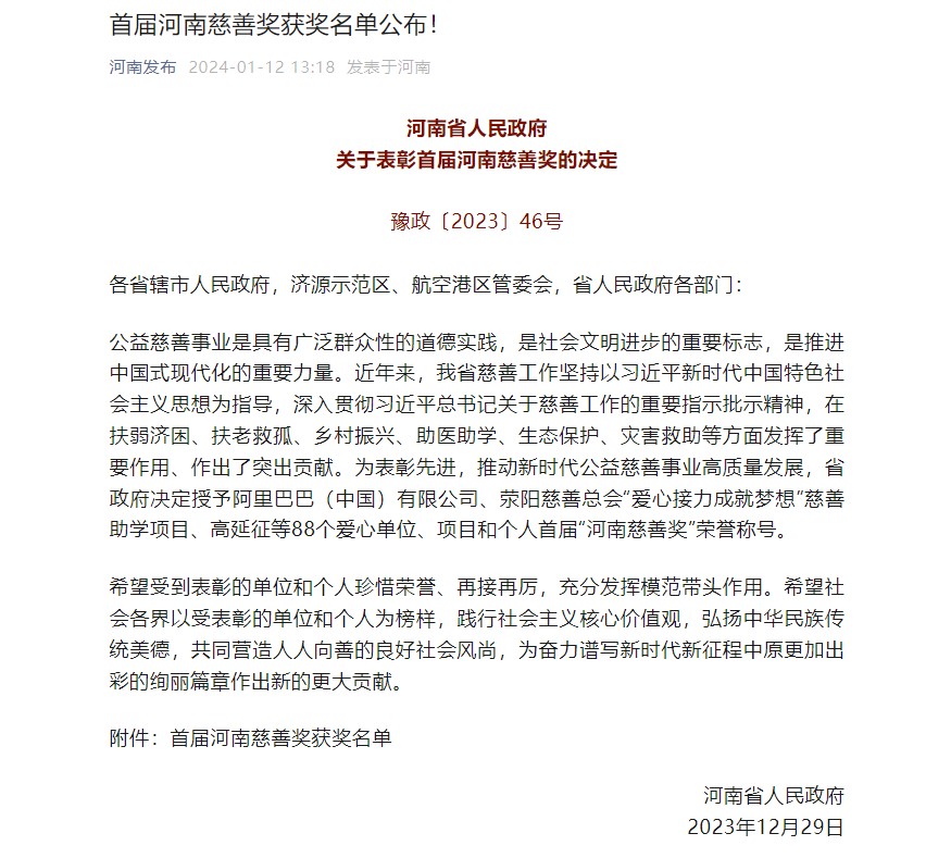 近日,河南省人民政府發(fā)布關(guān)于表彰首屆河南慈善獎的決定,中華環(huán)境保護(hù)基金會“河南救災(zāi)及生態(tài)重建”項目被授予首屆河南慈善獎“優(yōu)秀慈善項目”榮譽(yù)稱號。