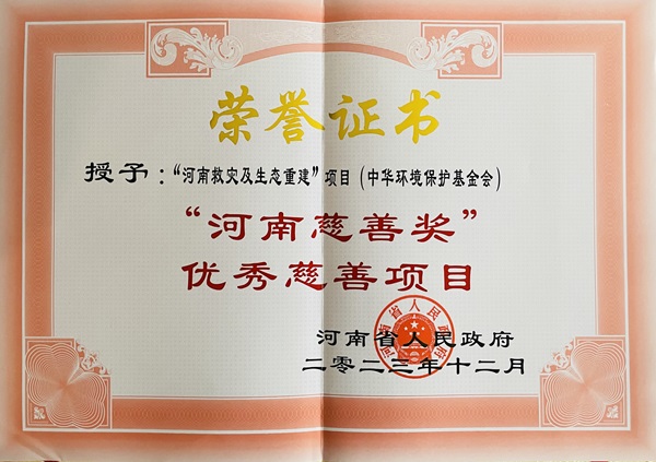 3月15日,首屆“河南慈善獎”表彰大會在鄭州舉辦,對獲獎集體和個人進行表彰,頒發獎牌和證書。中華環境保護基金會“河南救災及生態重建”項目被授予“河南慈善獎”優秀慈善項目。