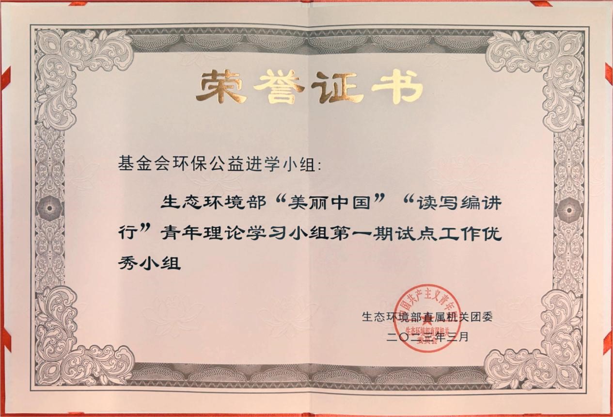 在生態環境部直屬機關團委組織的“美麗中國”“讀寫編講行”青年理論學習小組第一期試點工作中,我會榮獲優秀小組榮譽證書。