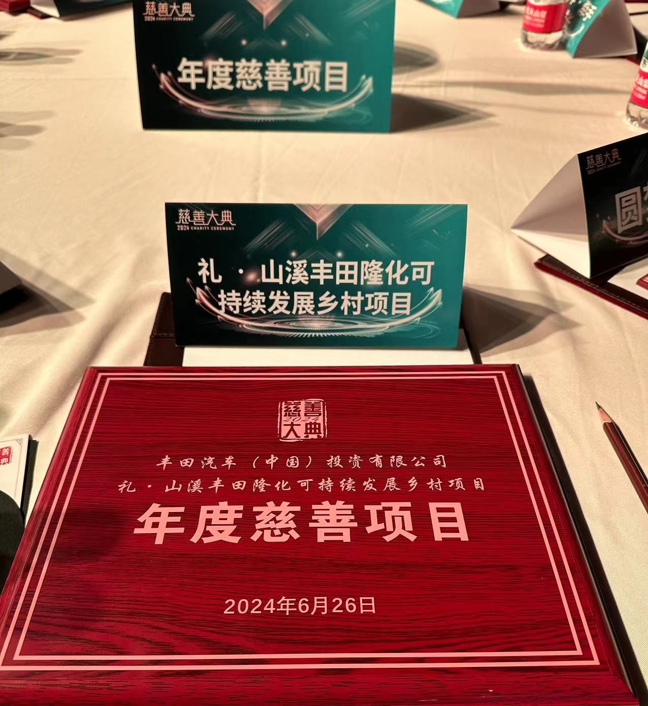 中華環境保護基金會與豐田汽車(中國)投資有限公司開展的“禮·山溪豐田隆化可持續發展鄉村項目”榮獲“年度慈善項目”。