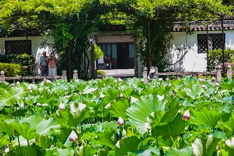 活動尾聲,全體參加人員對并蒂蓮池進行實地探訪。在碧葉連天的荷塘畔,一株株并蒂蓮亭亭玉立,其“一莖生兩花,花各有蒂”的奇觀引得眾人連連贊嘆,紛紛駐足拍照記錄這一自然奇景。據專家現場介紹,并蒂蓮作為植物界的“雙胞胎”,其自然生成概率不足十萬分之一,不僅是重要的生態指示物種,更承載著“并蒂同心”的傳統文化寓意,具有極高的生態保護價值和文化傳承意義。